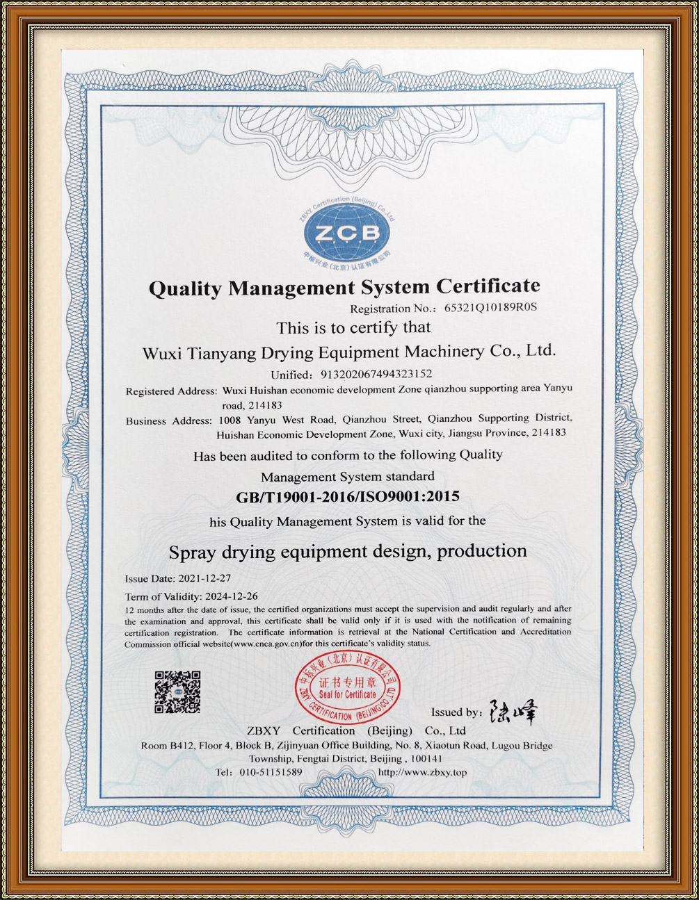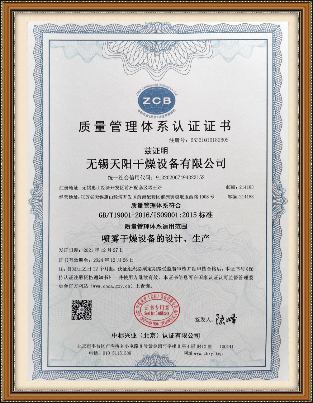 无锡天阳干燥设备有限公司竭诚欢迎广大客户莅临指导,愿为满足客户对现代化喷雾干燥设备日益增长的需求而努力!